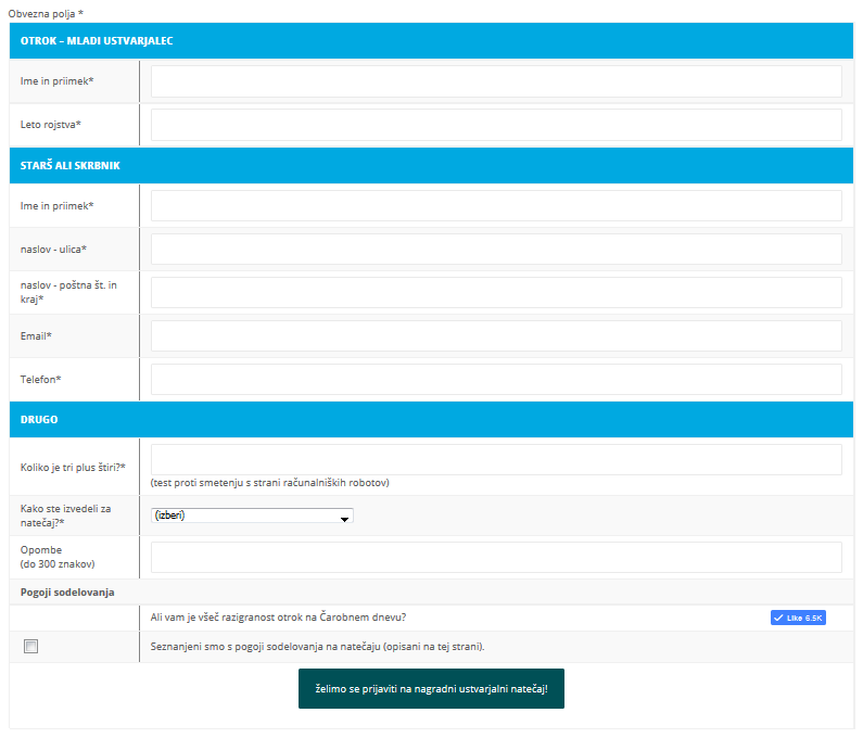 S sodelovanjem na natečaju se ustvarjalci strinjajo s pogoji natečaja.